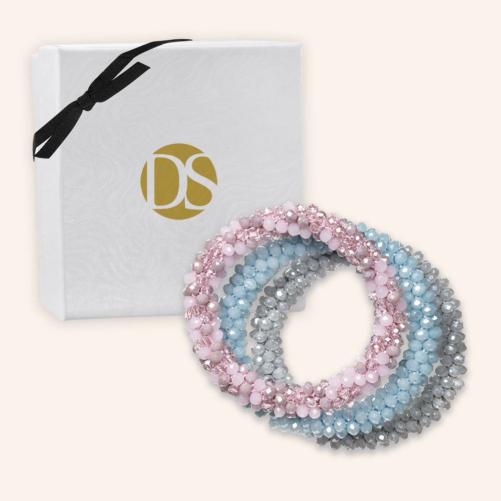 This handcrafted wonder bracelet set is a spirited start to so many adventurous ensembles. Made with the best quality glass beads and featuring an iridescent style with hundreds of sparkling facets. Bring a Touch of chic color to your wrist every time you slip them on. Easy to wear, easy to love!