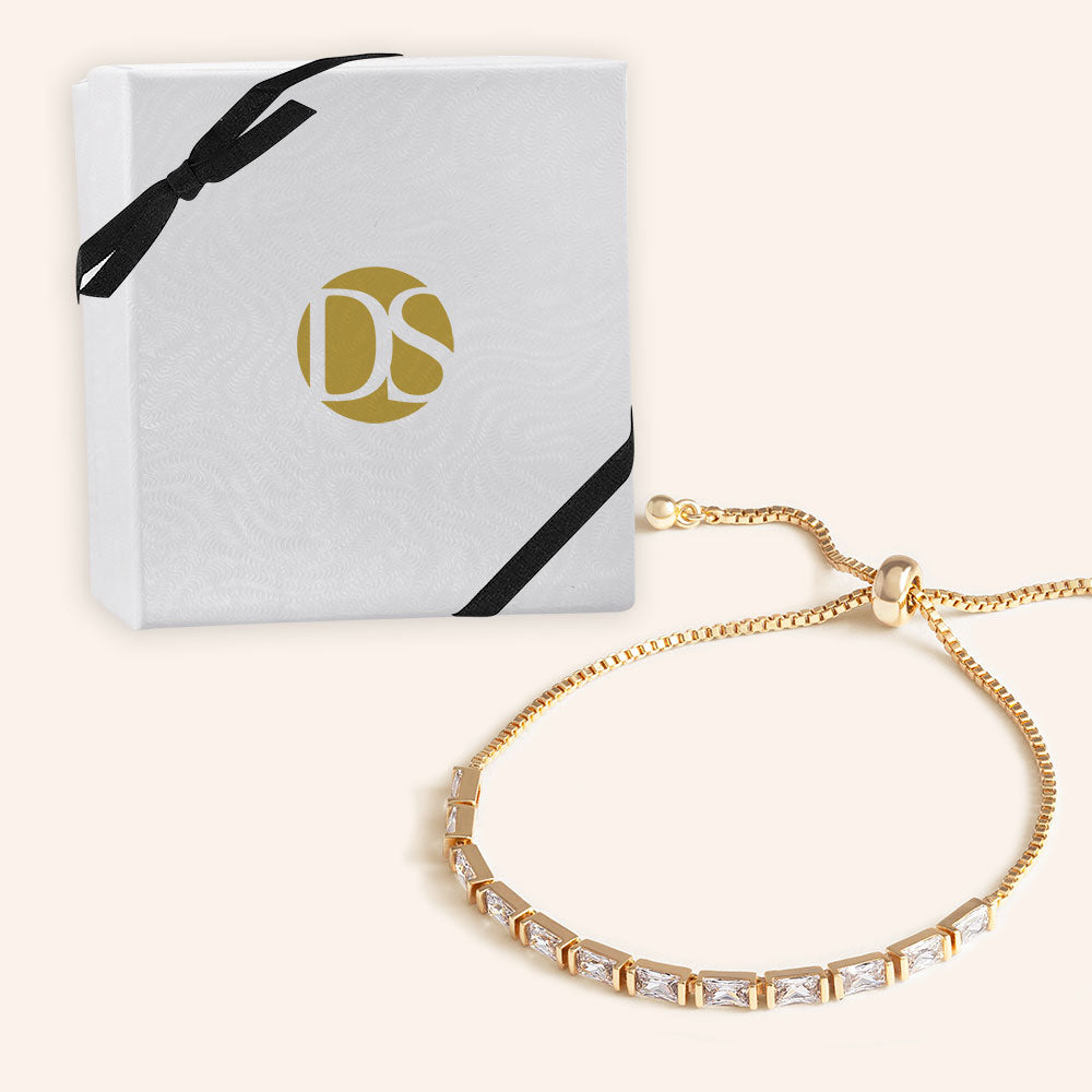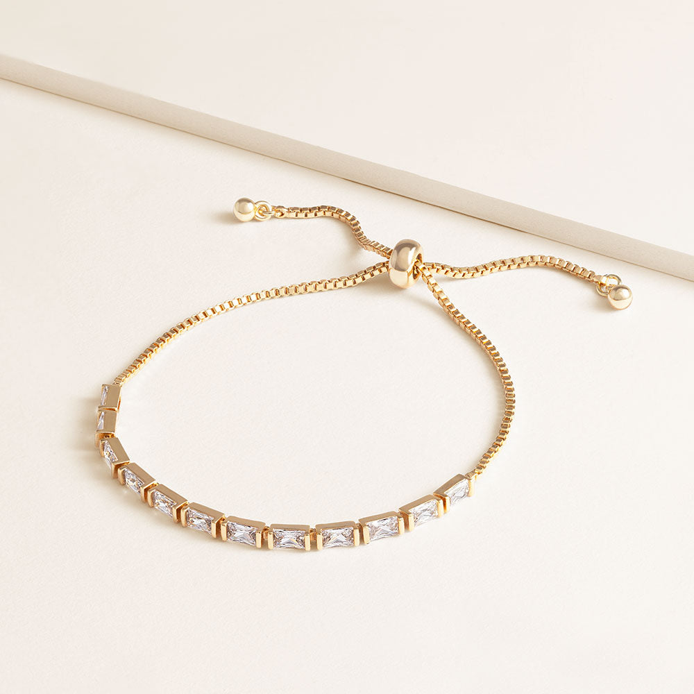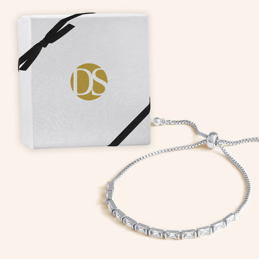 Looking for a jewelry statement that's simple, yet chic? Then this classic Bezel-set Baguette-cut tennis bracelet is a no-brainer. Wide enough to make a style statement on its own, its adjustable box chain extenders add a sleek, sexy touch. Wear it alone or layered with other favorites for looks that are flirty and fun!
