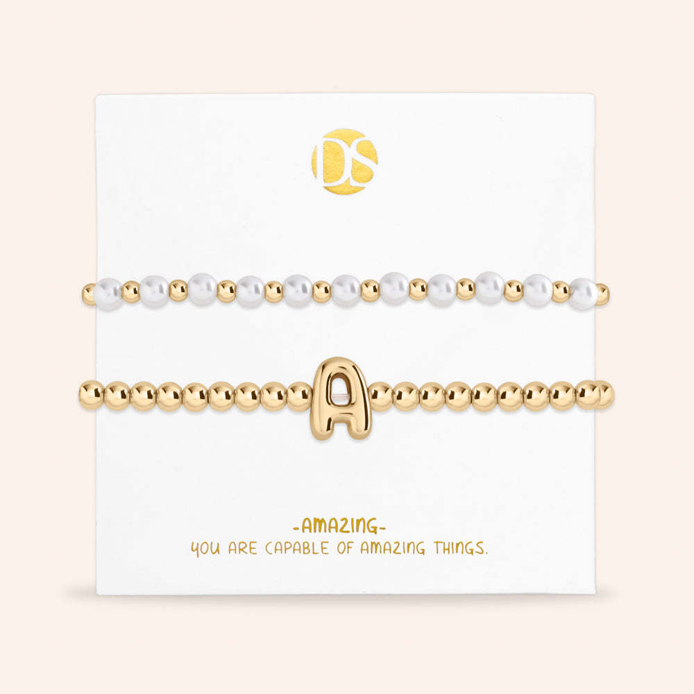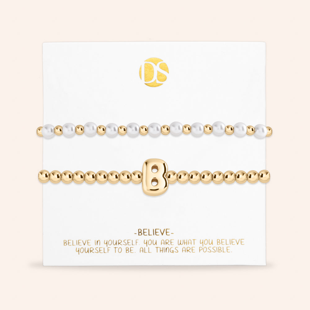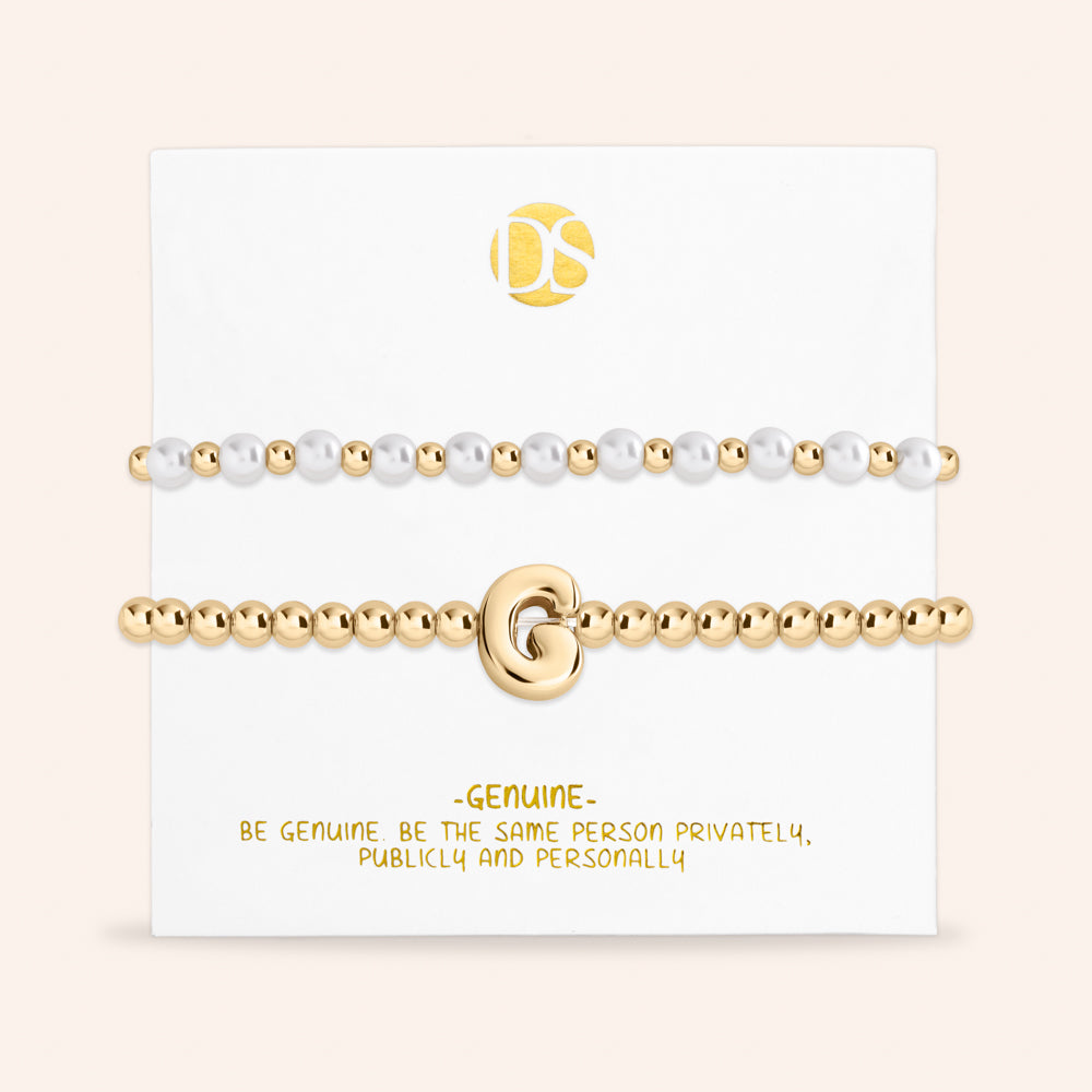 Delicate yet meaningful, the "Yours to Keep" Bracelet Set combines the timeless elegance of pearls with the personal touch of custom initials. Designed for effortless wear, these stretch bracelets fit comfortably on any wrist, making them the perfect choice for stacking or wearing solo.