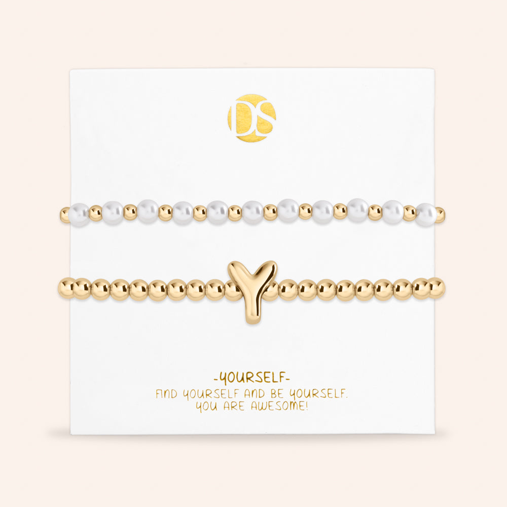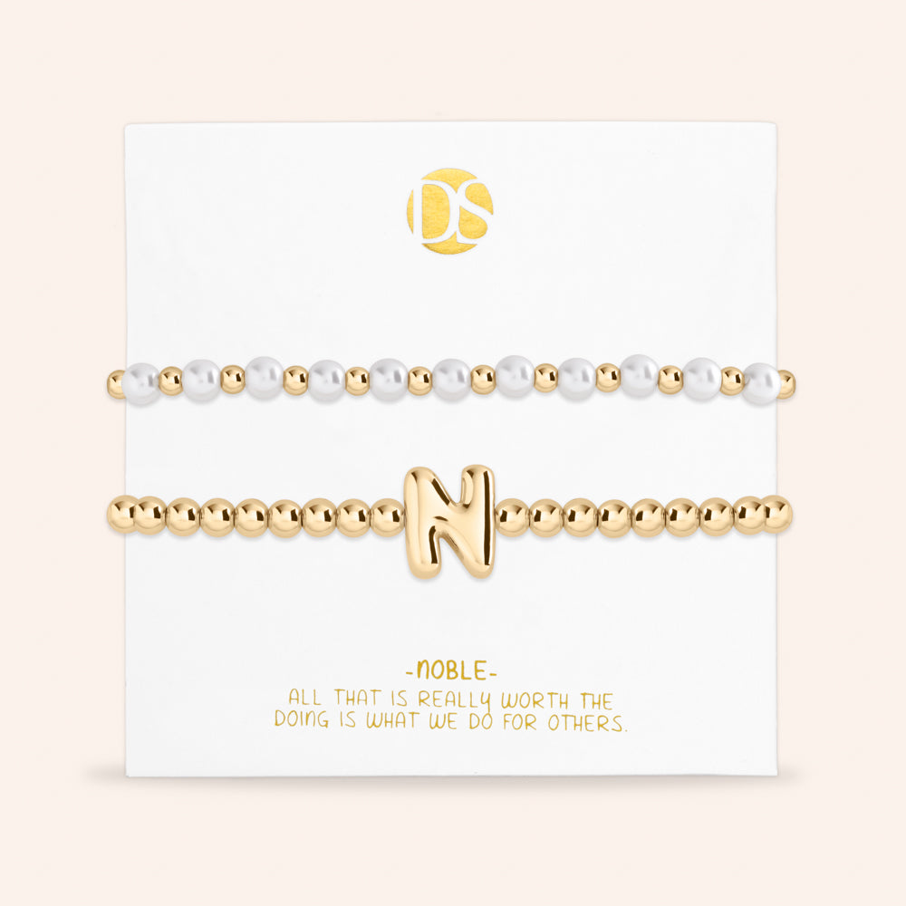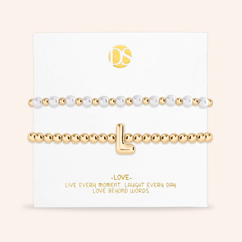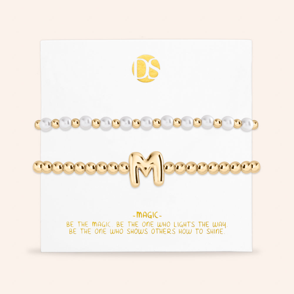 Delicate yet meaningful, the "Yours to Keep" Bracelet Set combines the timeless elegance of pearls with the personal touch of custom initials. Designed for effortless wear, these stretch bracelets fit comfortably on any wrist, making them the perfect choice for stacking or wearing solo.