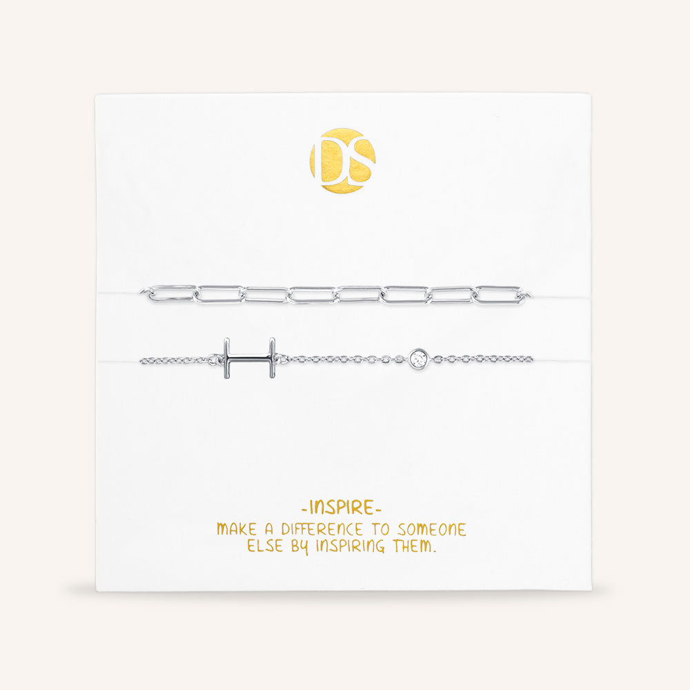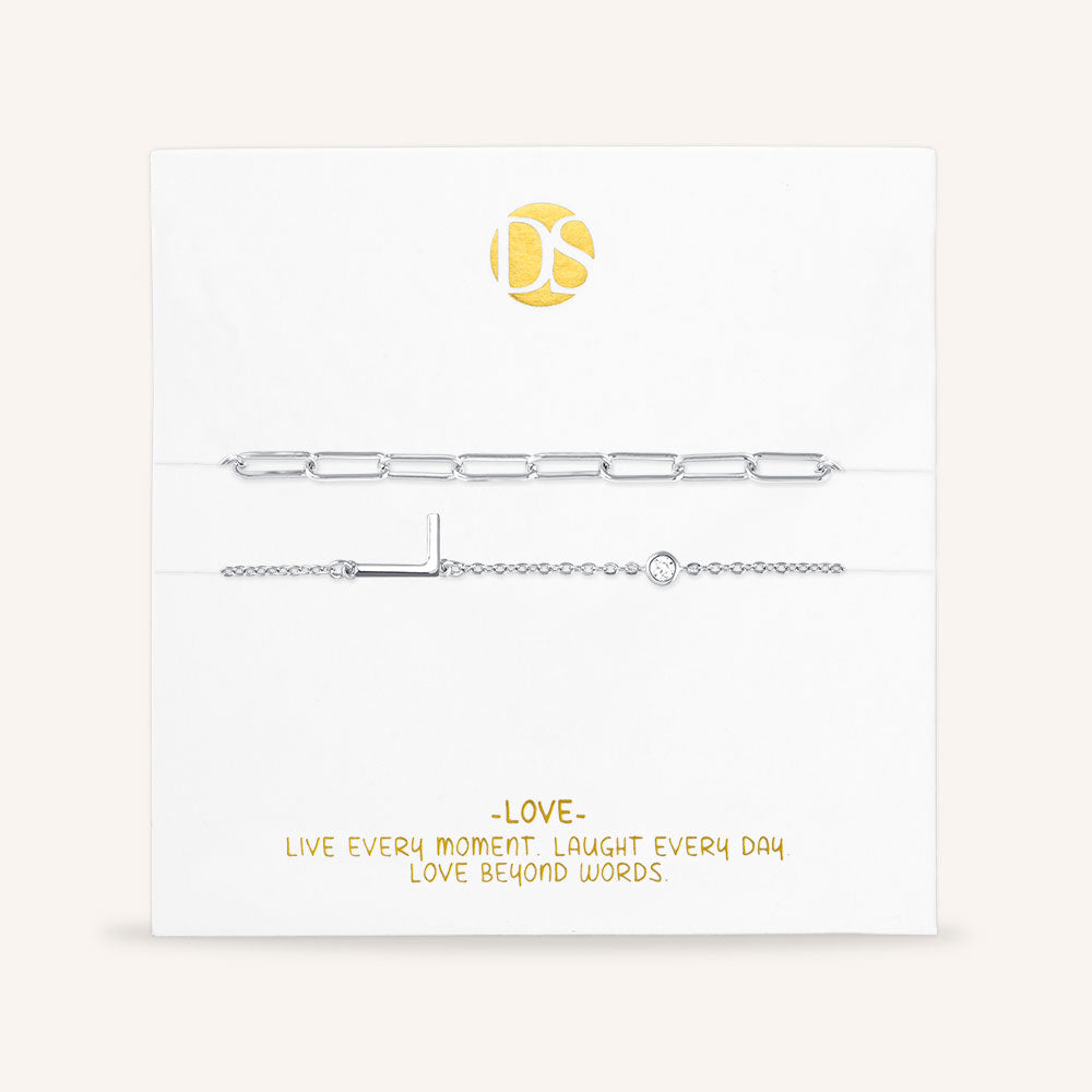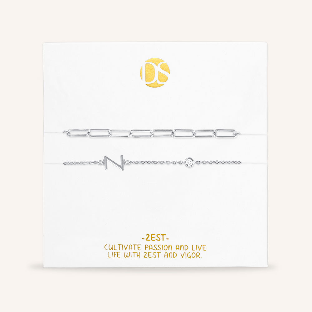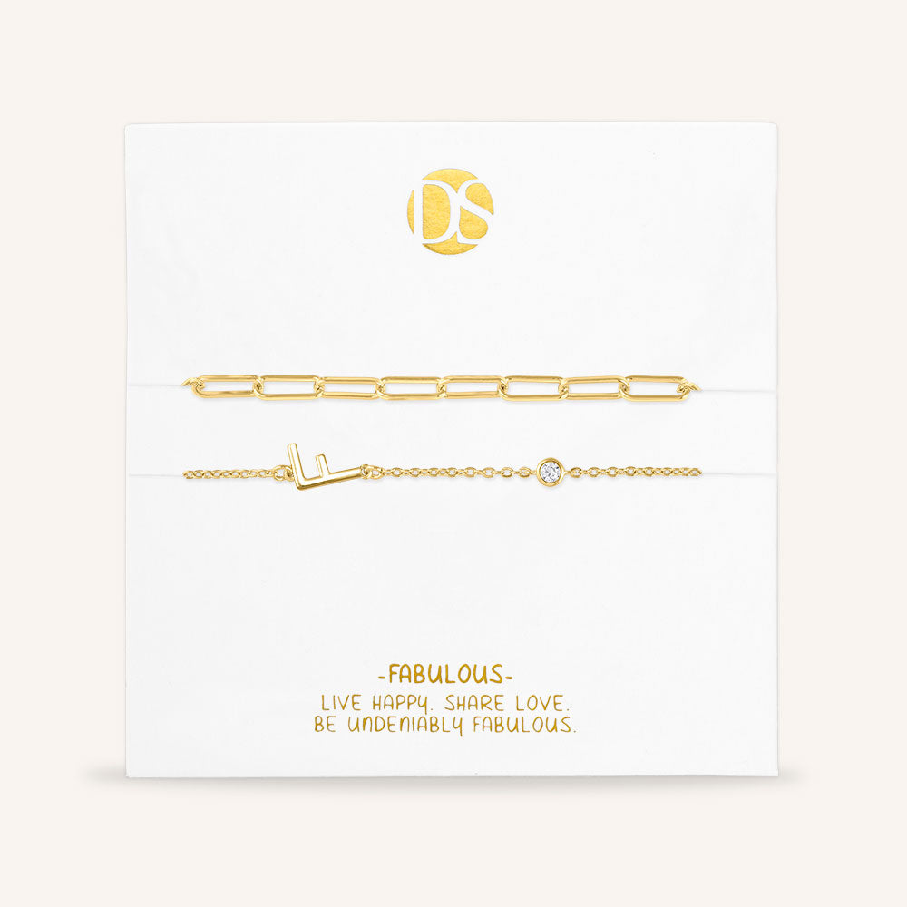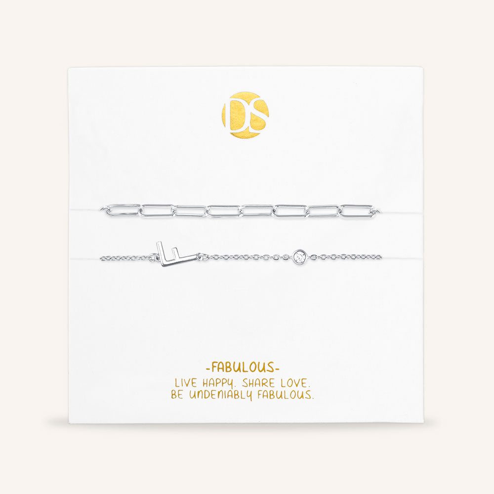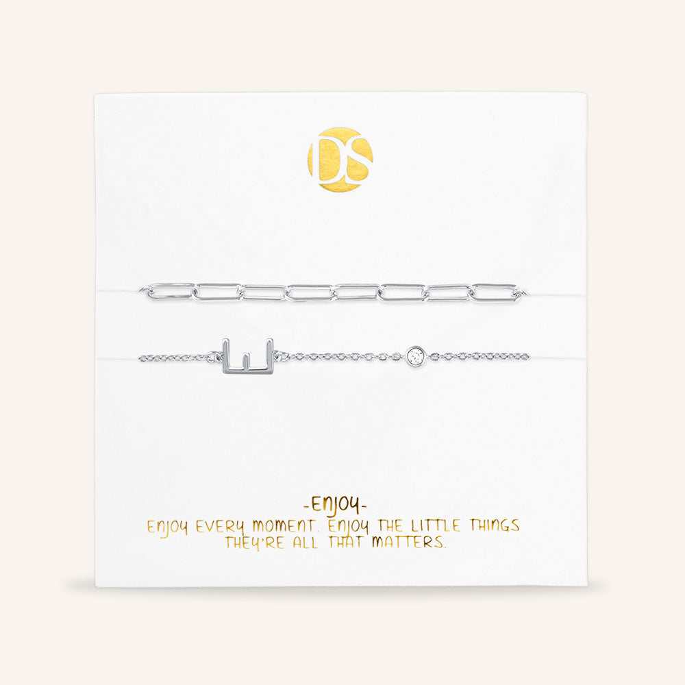 Just for you or for a lucky loved one! This perfectly layered duo is a great gift for yourself as well as for every lady in the house. Different chain textures mix and mingle on this highly polished personalized bracelet set to give you wearable staple style with interest-generating flair. Whether you wear the two bracelets at once or one at a time, this versatile set easily adapts to each look you create.