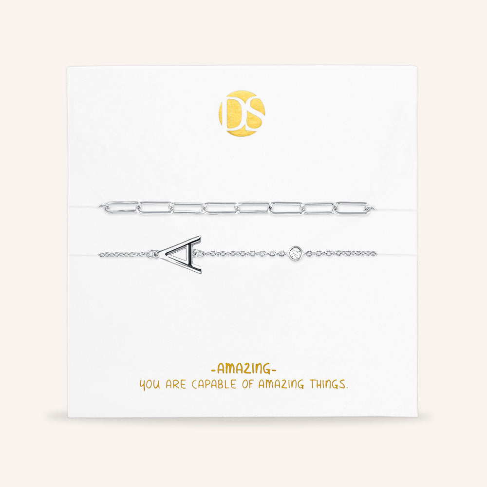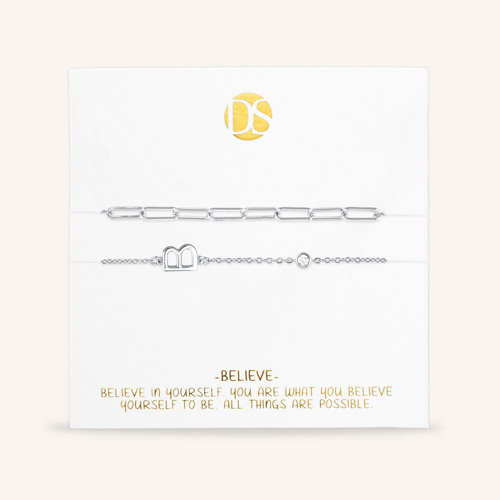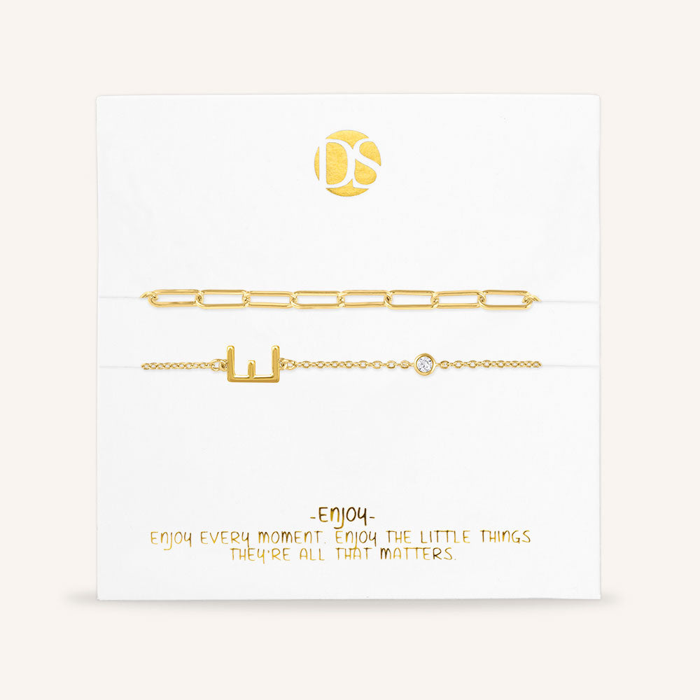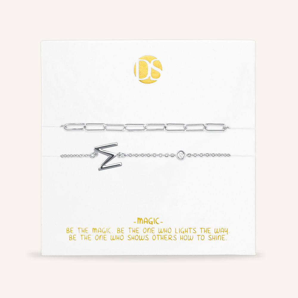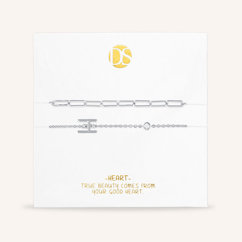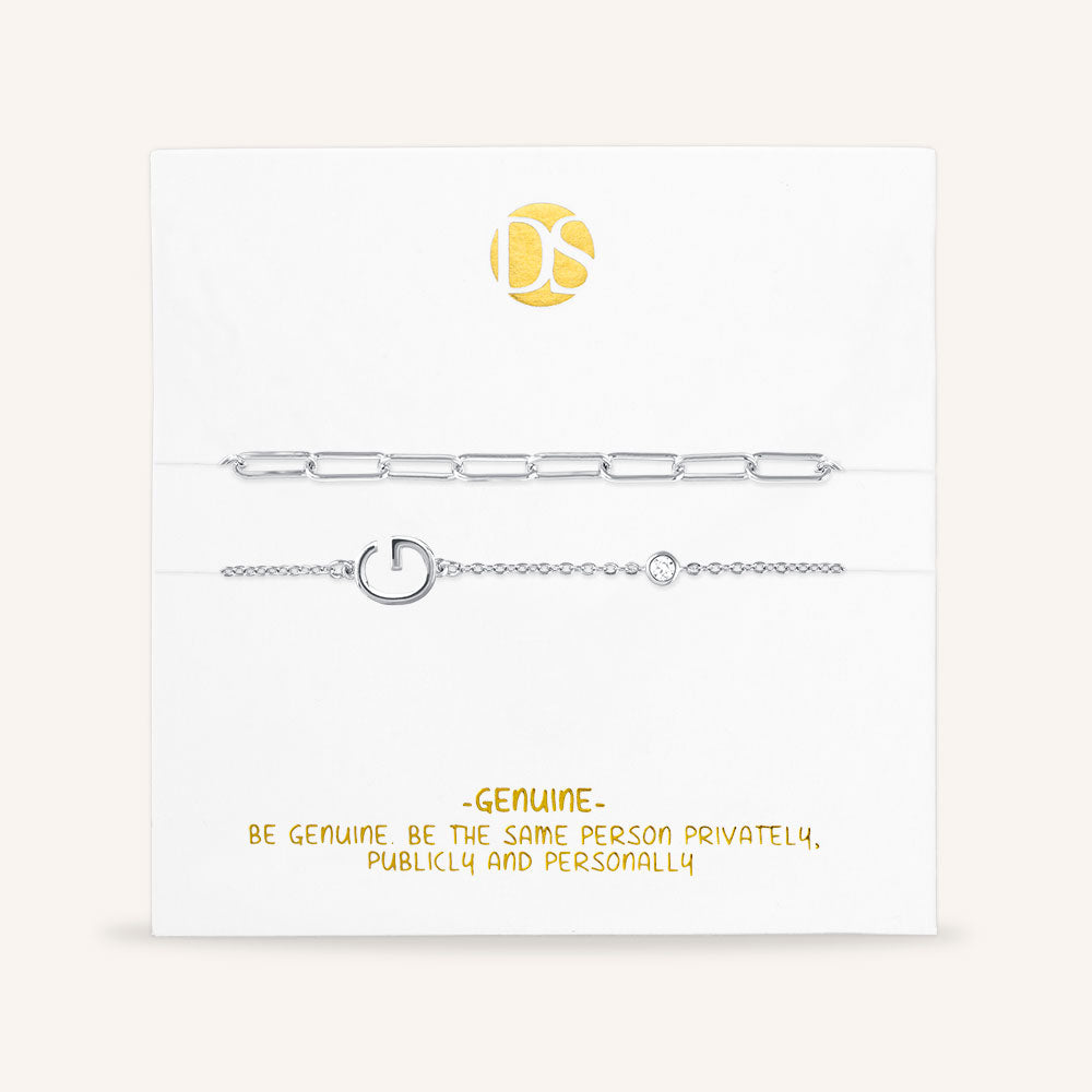 Just for you or for a lucky loved one! This perfectly layered duo is a great gift for yourself as well as for every lady in the house. Different chain textures mix and mingle on this highly polished personalized bracelet set to give you wearable staple style with interest-generating flair. Whether you wear the two bracelets at once or one at a time, this versatile set easily adapts to each look you create.
