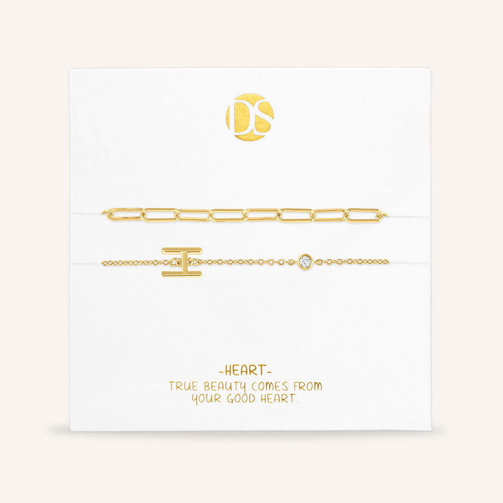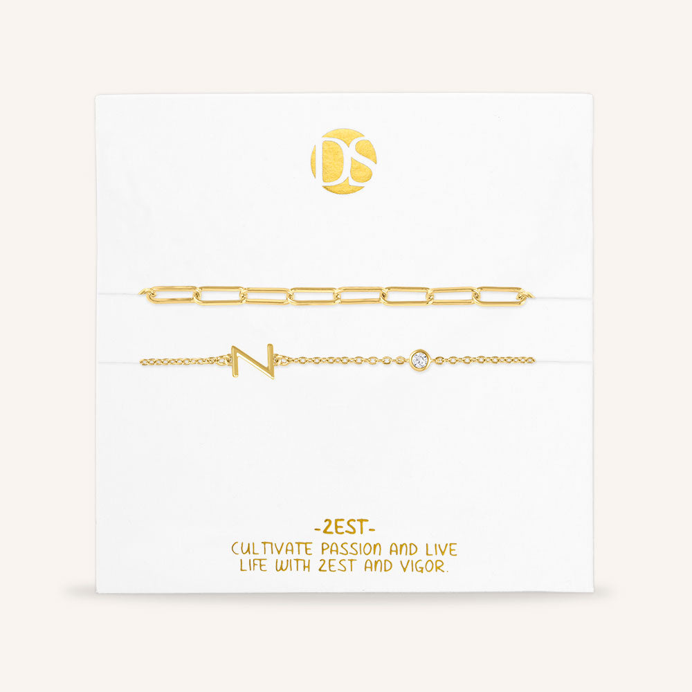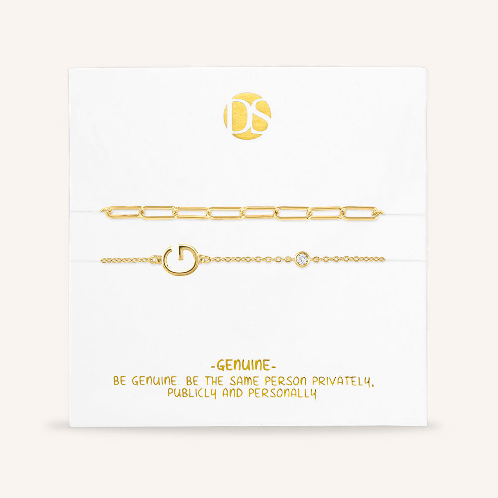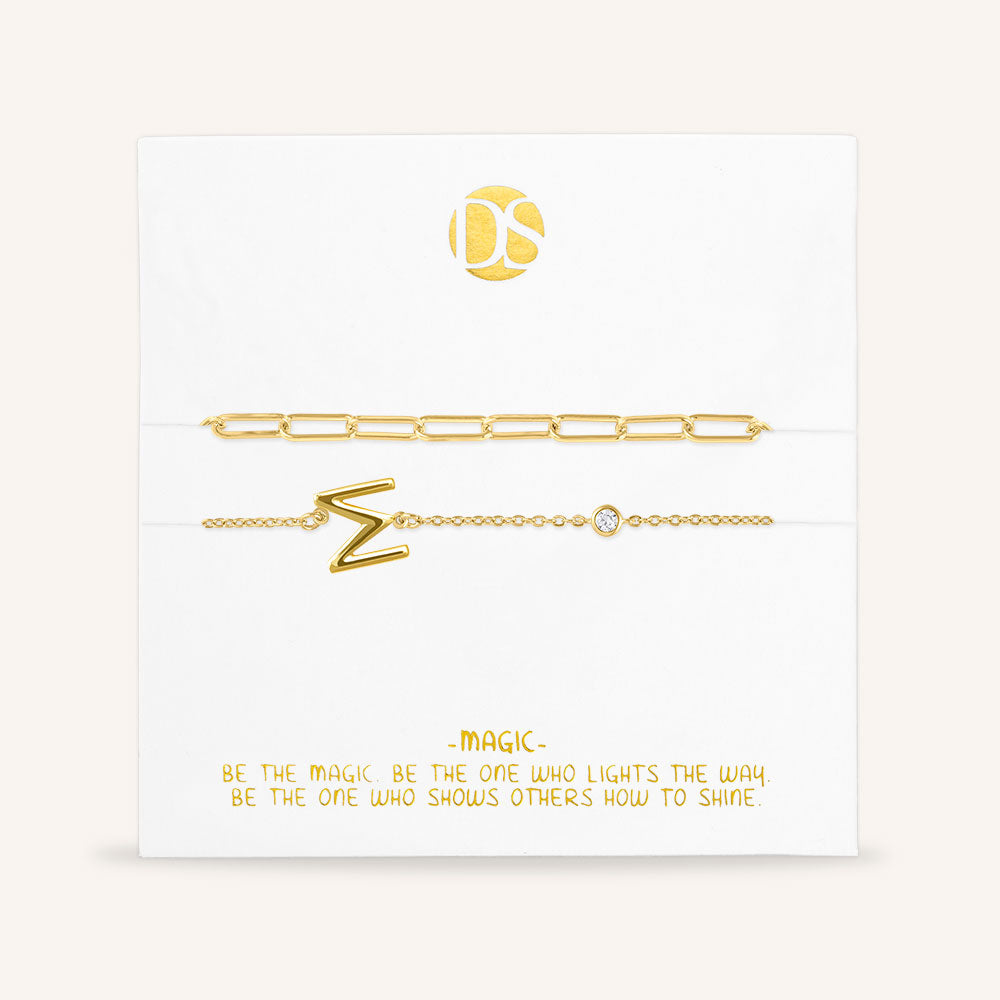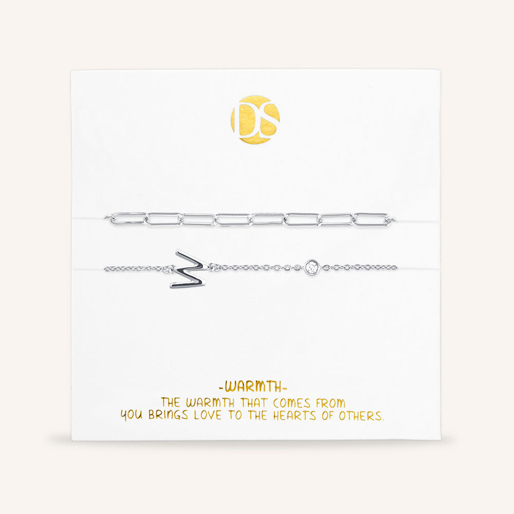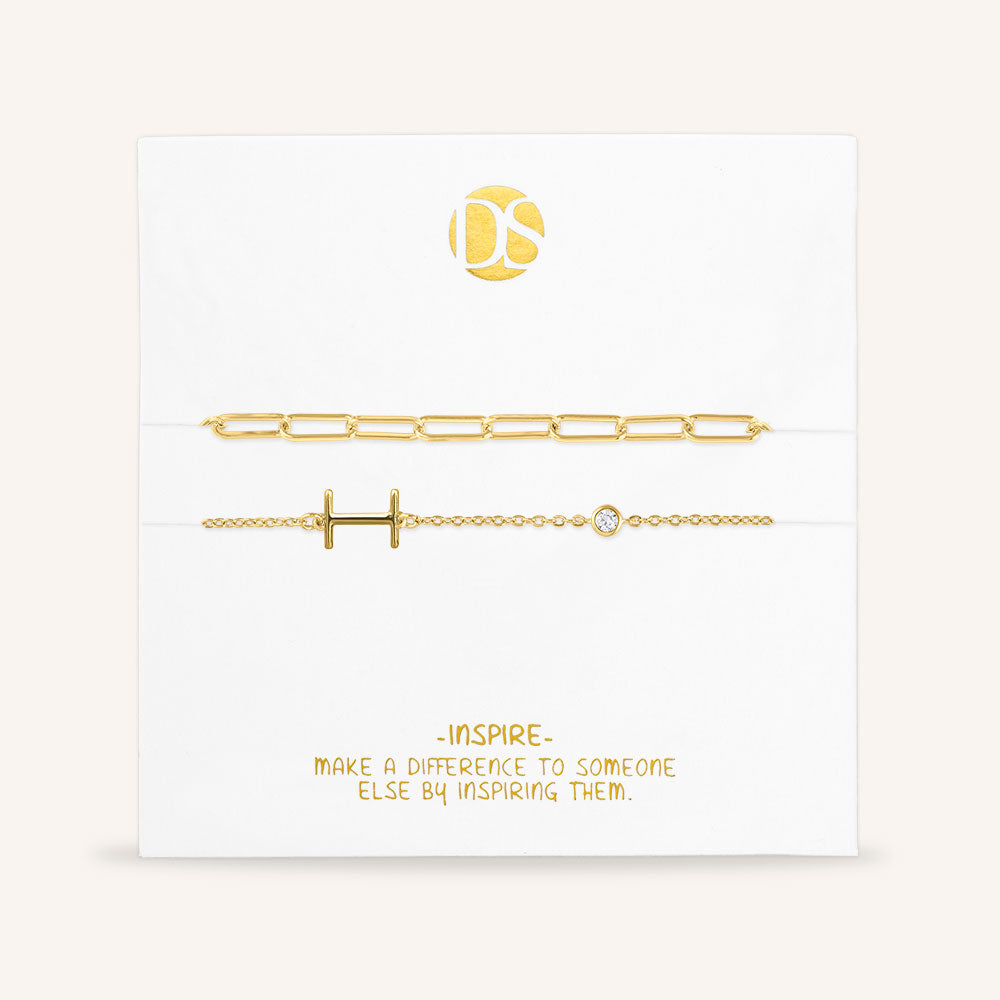 Just for you or for a lucky loved one! This perfectly layered duo is a great gift for yourself as well as for every lady in the house. Different chain textures mix and mingle on this highly polished personalized bracelet set to give you wearable staple style with interest-generating flair. Whether you wear the two bracelets at once or one at a time, this versatile set easily adapts to each look you create.