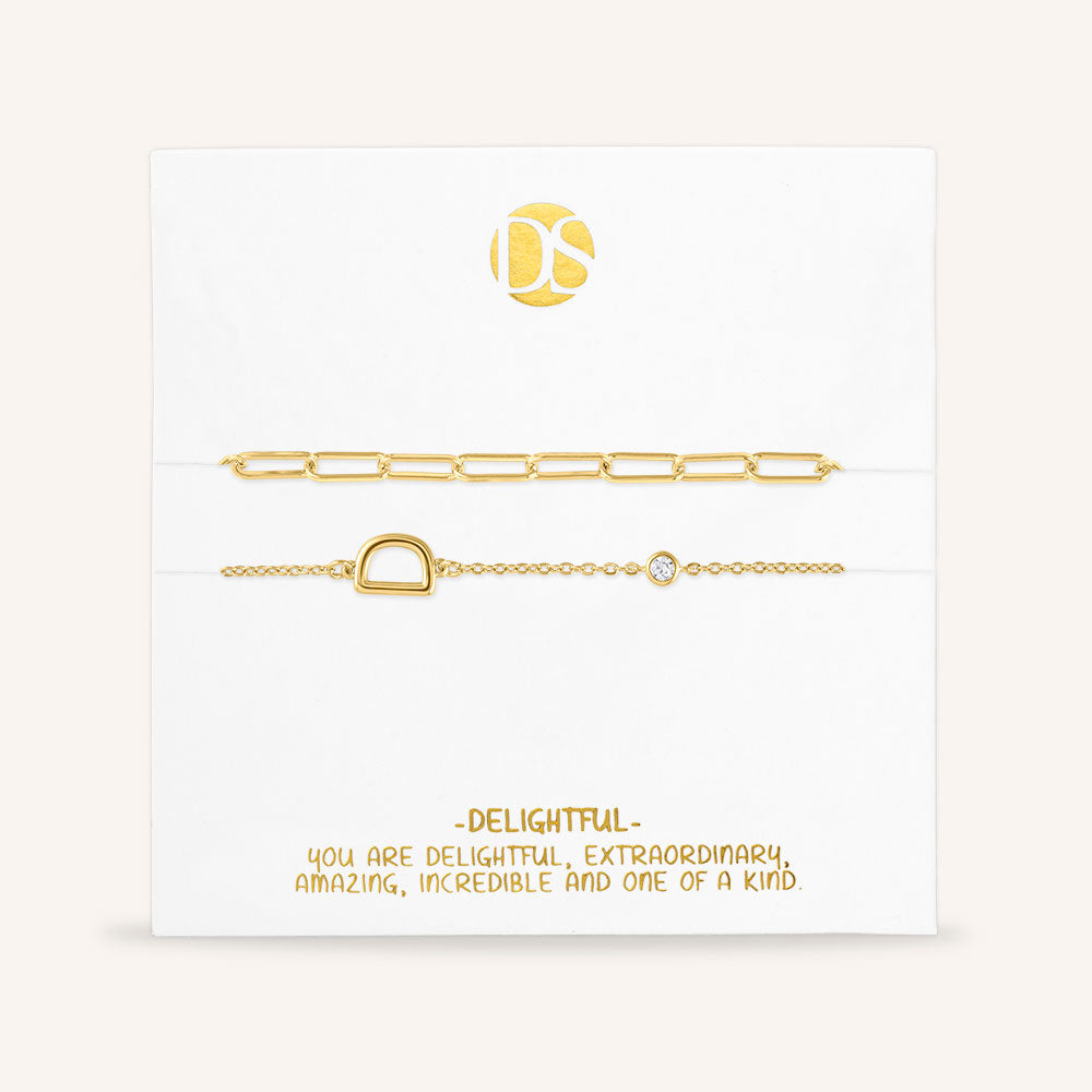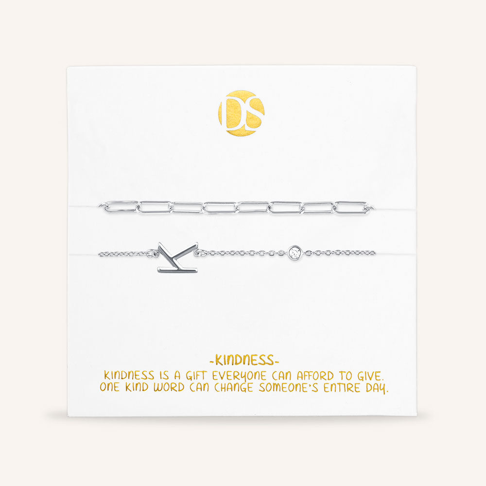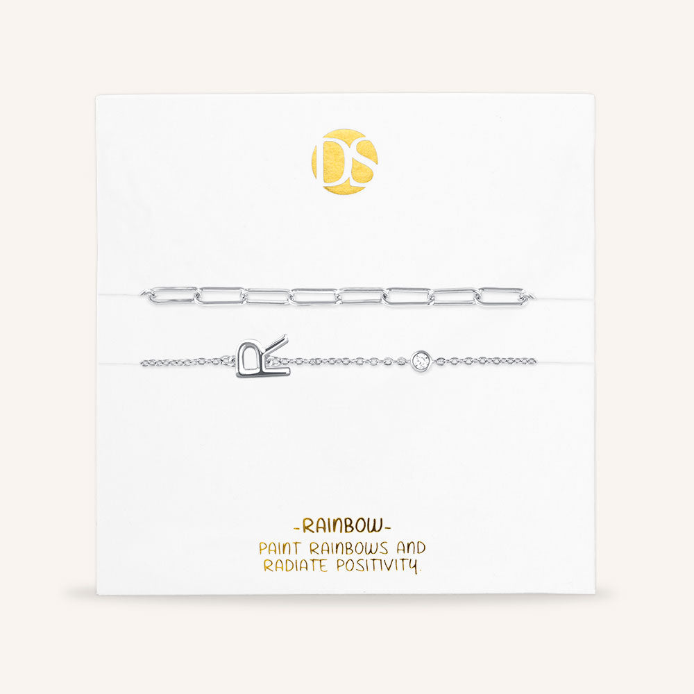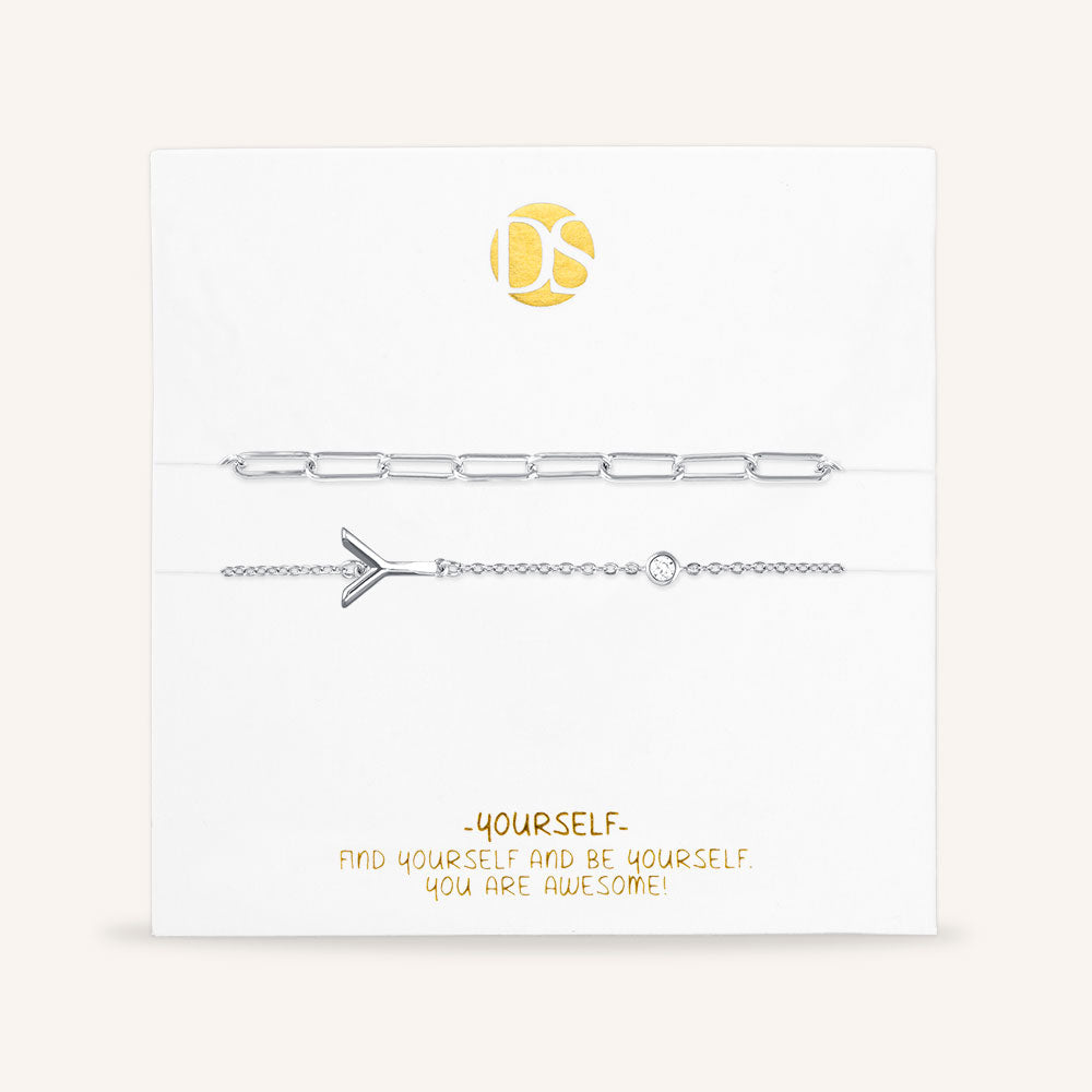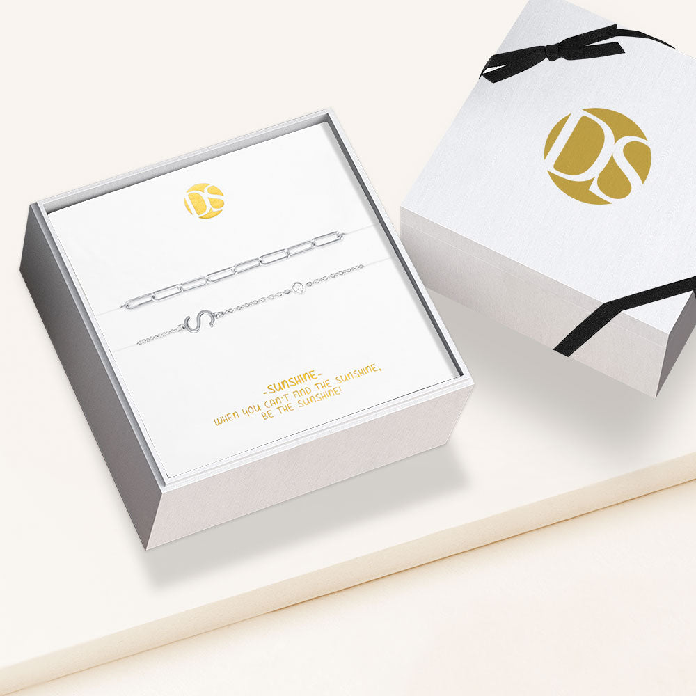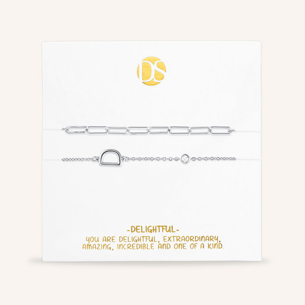 Just for you or for a lucky loved one! This perfectly layered duo is a great gift for yourself as well as for every lady in the house. Different chain textures mix and mingle on this highly polished personalized bracelet set to give you wearable staple style with interest-generating flair. Whether you wear the two bracelets at once or one at a time, this versatile set easily adapts to each look you create.