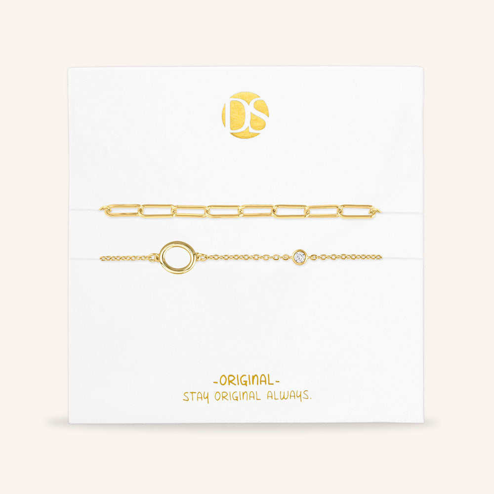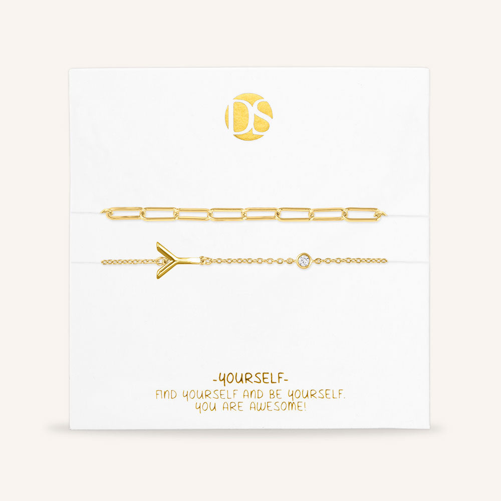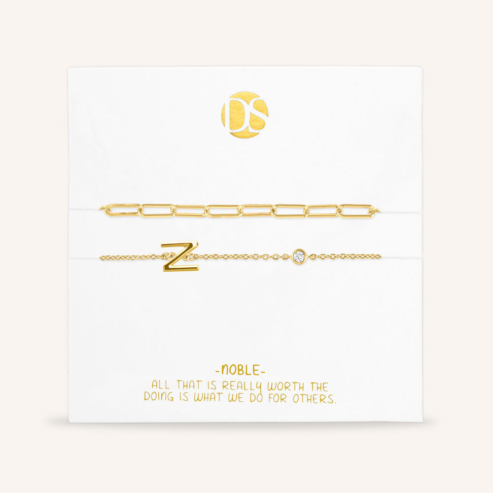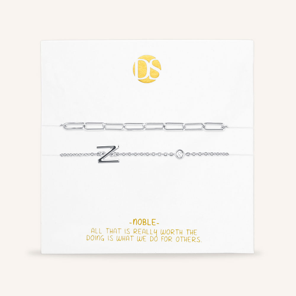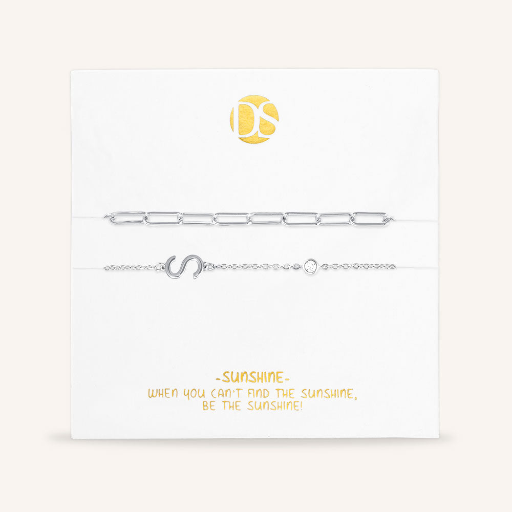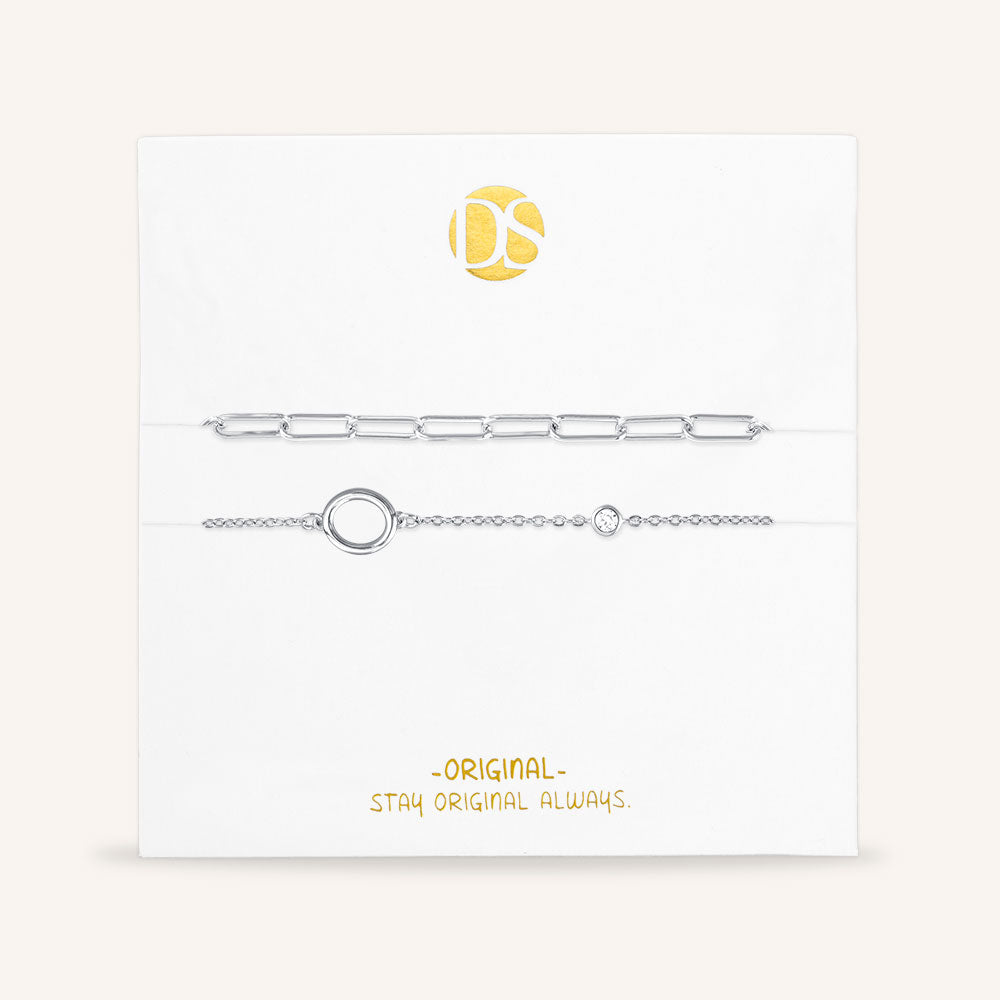 Just for you or for a lucky loved one! This perfectly layered duo is a great gift for yourself as well as for every lady in the house. Different chain textures mix and mingle on this highly polished personalized bracelet set to give you wearable staple style with interest-generating flair. Whether you wear the two bracelets at once or one at a time, this versatile set easily adapts to each look you create.