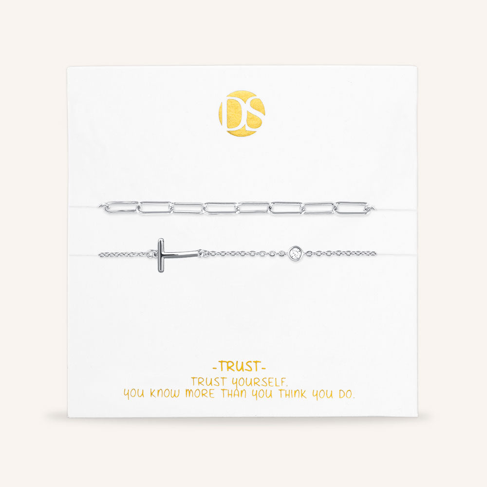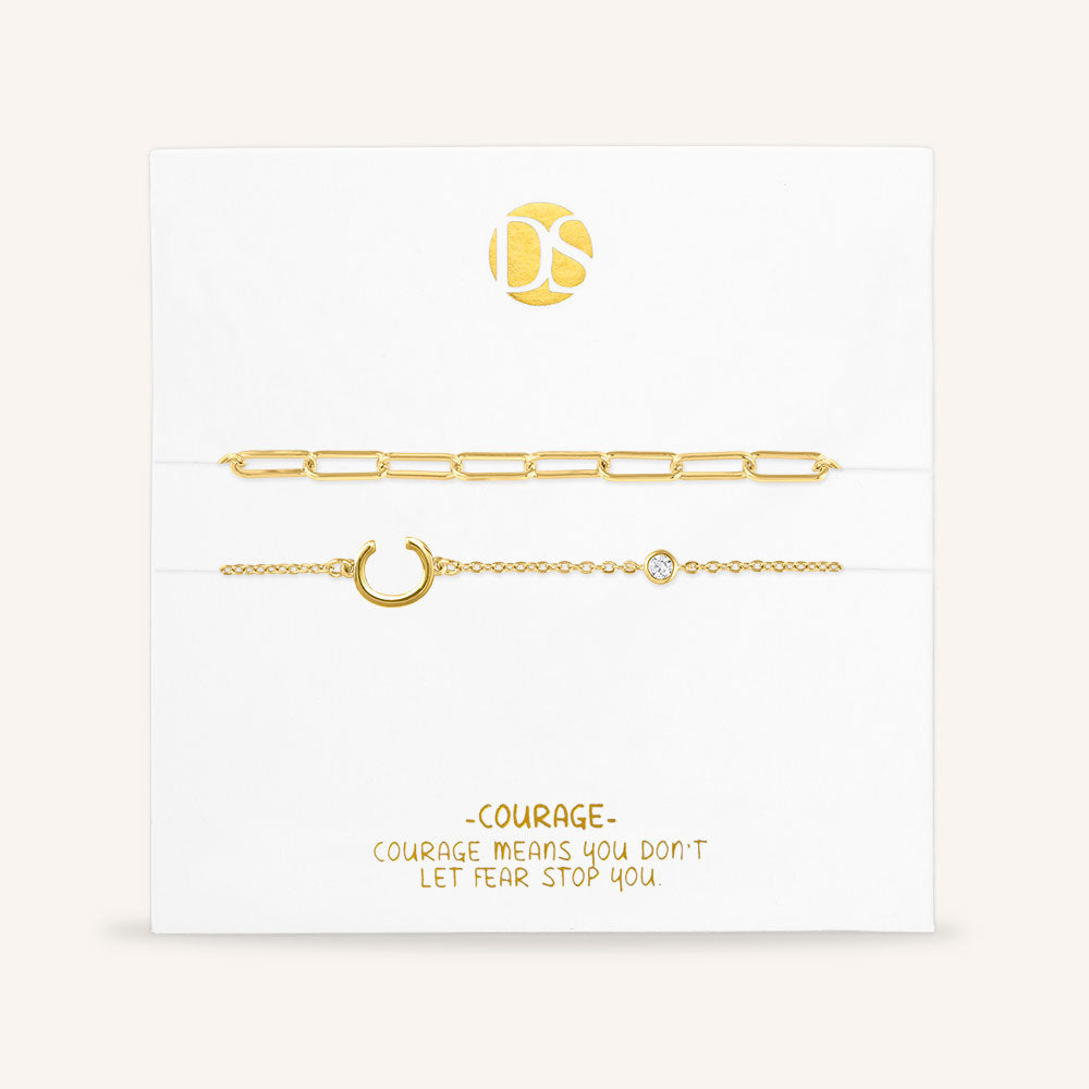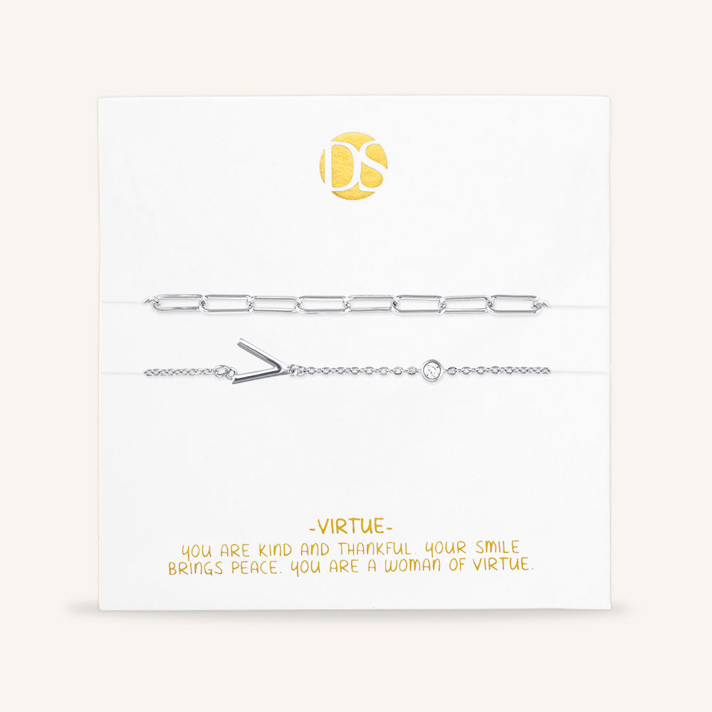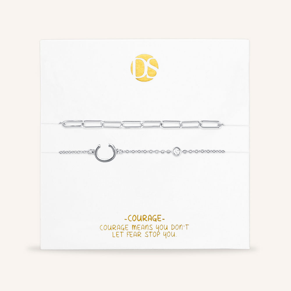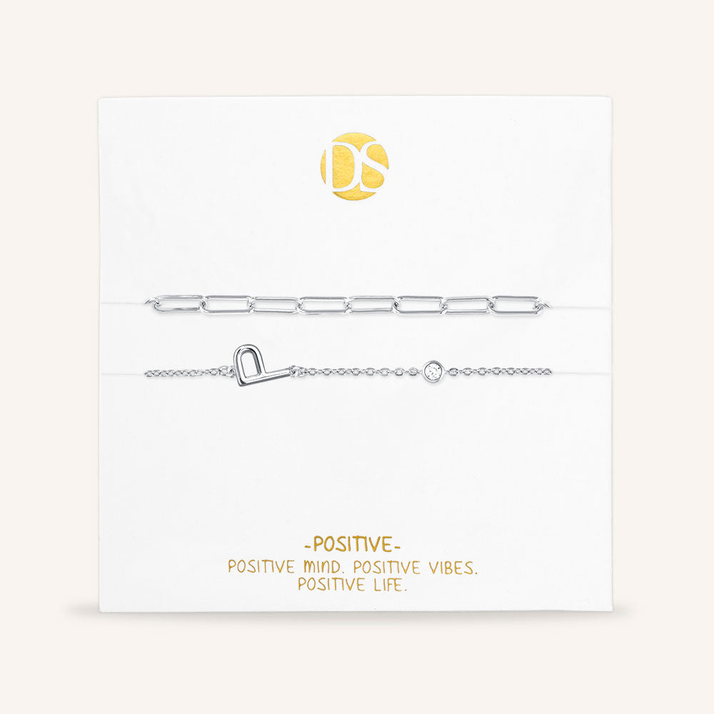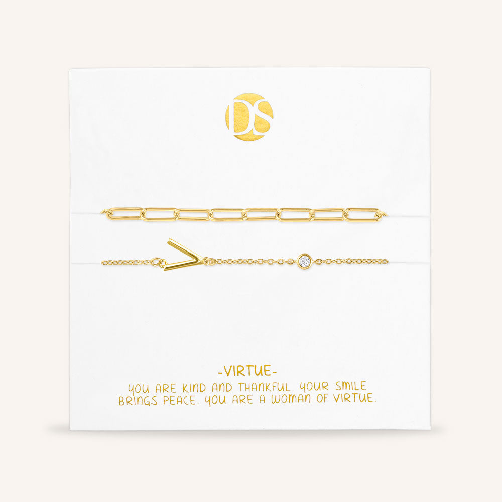 Just for you or for a lucky loved one! This perfectly layered duo is a great gift for yourself as well as for every lady in the house. Different chain textures mix and mingle on this highly polished personalized bracelet set to give you wearable staple style with interest-generating flair. Whether you wear the two bracelets at once or one at a time, this versatile set easily adapts to each look you create.