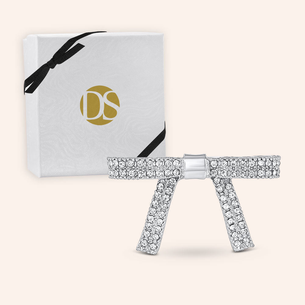 Add a touch of brilliant to your hair style with these dazzling Bow Barrette. Accessorizing is easy with chic hair pieces like this! • Prong-set Round Cut Cubic Zirconia Stones: 2 mm • Dimensions: - Hair Barrette: 2” in Length, 0.25” in Width • Lead and Nickel Free Silver-Plated Brass • Comes Packaged in a Gift Box as shown