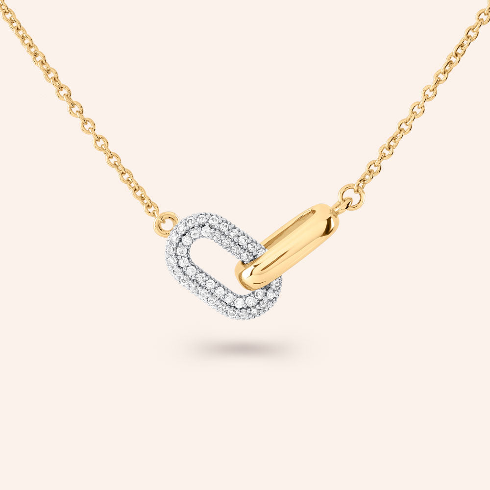 Shine bright with the Dare to Dazzle Pave Link Pendant Necklace. Featuring a stunning pave-set link pendant, this necklace catches the light with every movement, adding a touch of glamour and sophistication to any outfit. Perfect for making a statement, its bold design effortlessly combines elegance with modern sparkle.