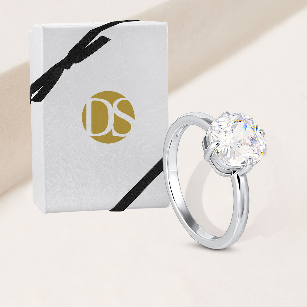 • Prong-set Asher Cut Stone: 8 x 8 mm