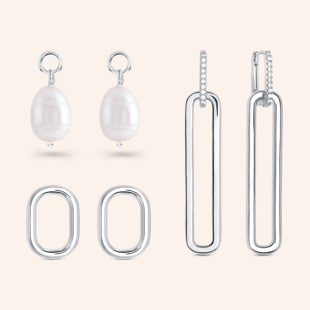 Perfect for those who love to express their mood and personality through their accessories, the Adorn Me hoop set lets you change up your style in a snap — from day to night, with ease and flair.